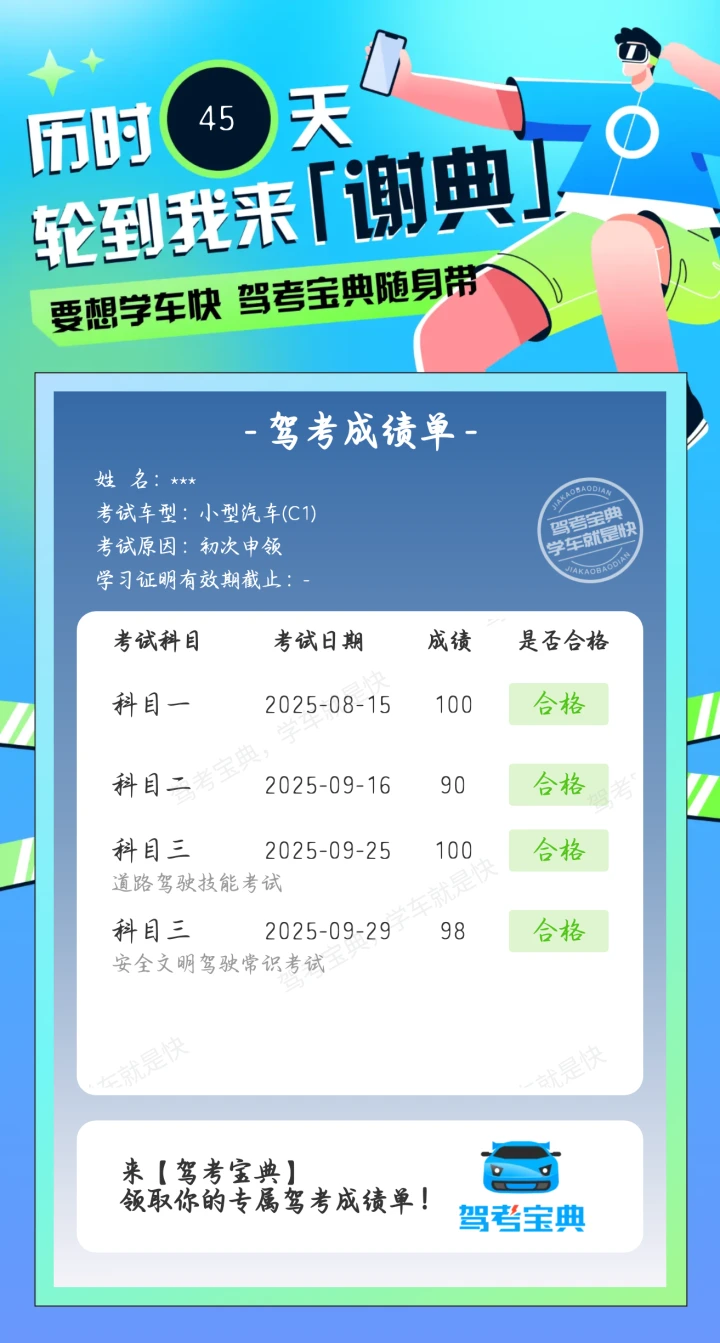 轻轻松松简简单单,感谢驾考宝典,今日前来谢宝典,祝愿大家考试都是一把过