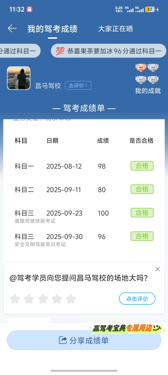 当前位置:首页>驾考圈>也是拿下了,祝大家早点拿证😜