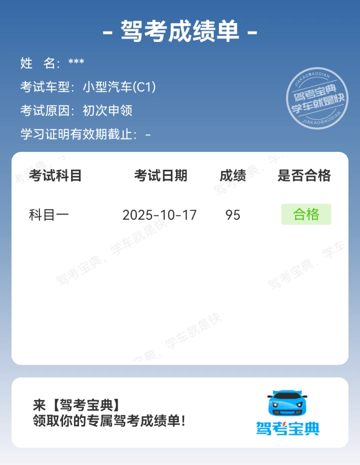 当前位置:首页>驾考圈>科目一>科一顺利通关,友友们收下这份驾