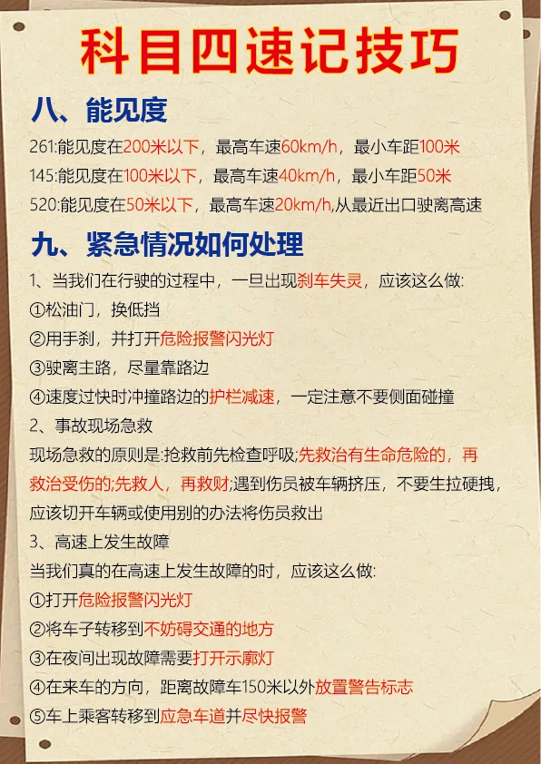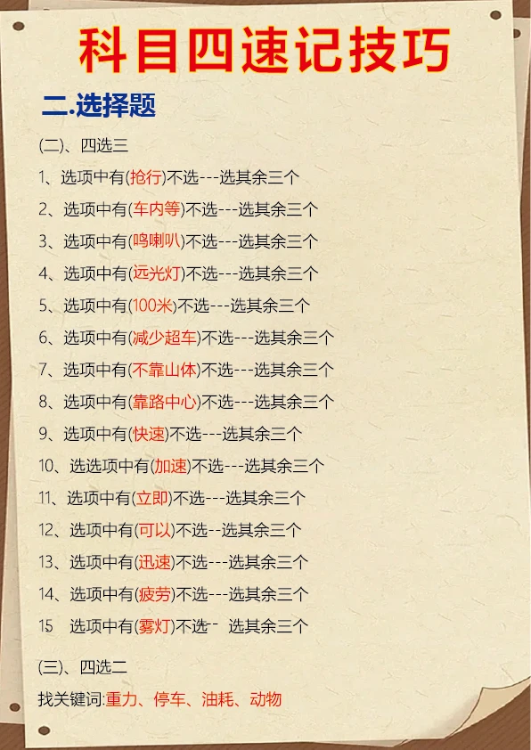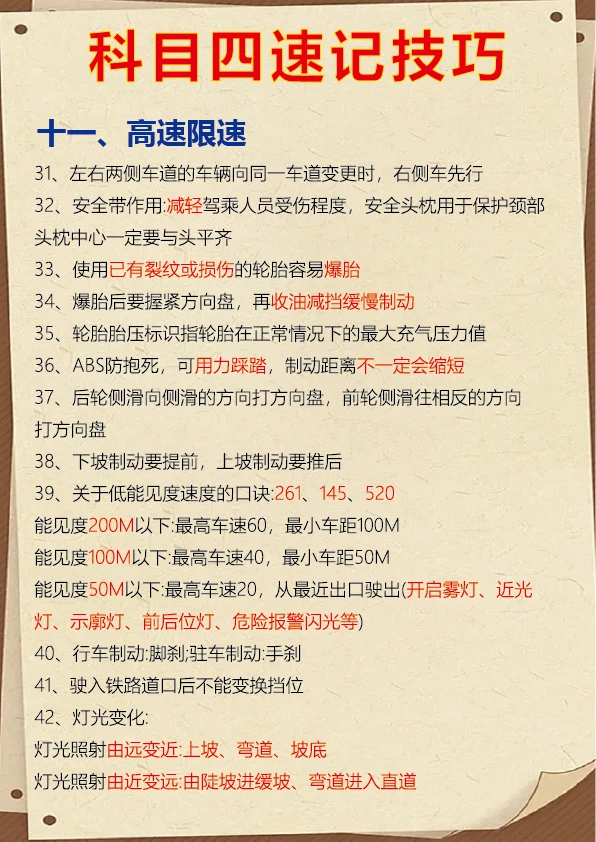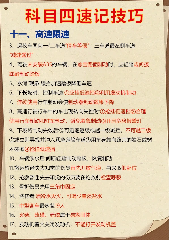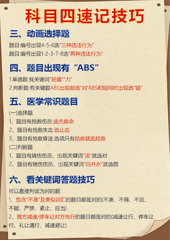 科四速记口诀,看完这篇就过了哈哈哈😎