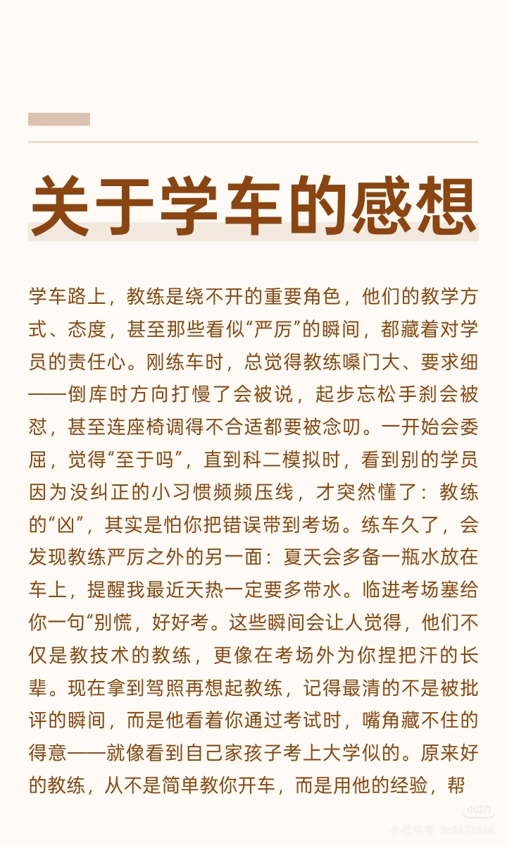 那些看似波澜不惊的日复一日, 总有一天会看到坚持的意义,认真看完了所有的文字,首先我字没有你写的好,其次里面引经据典,真情实感的流露,使我倍受鼓舞。驾考宝典真的很好用,很多题都压对了