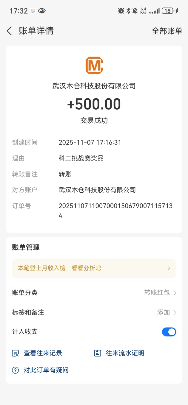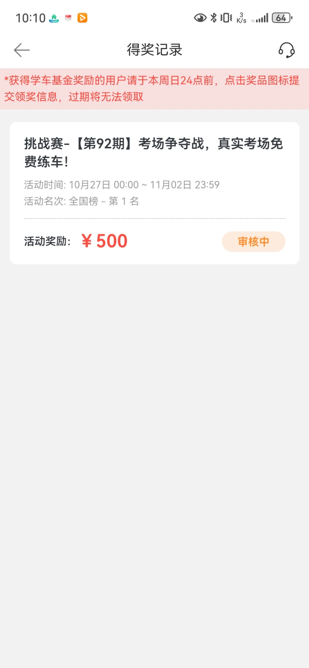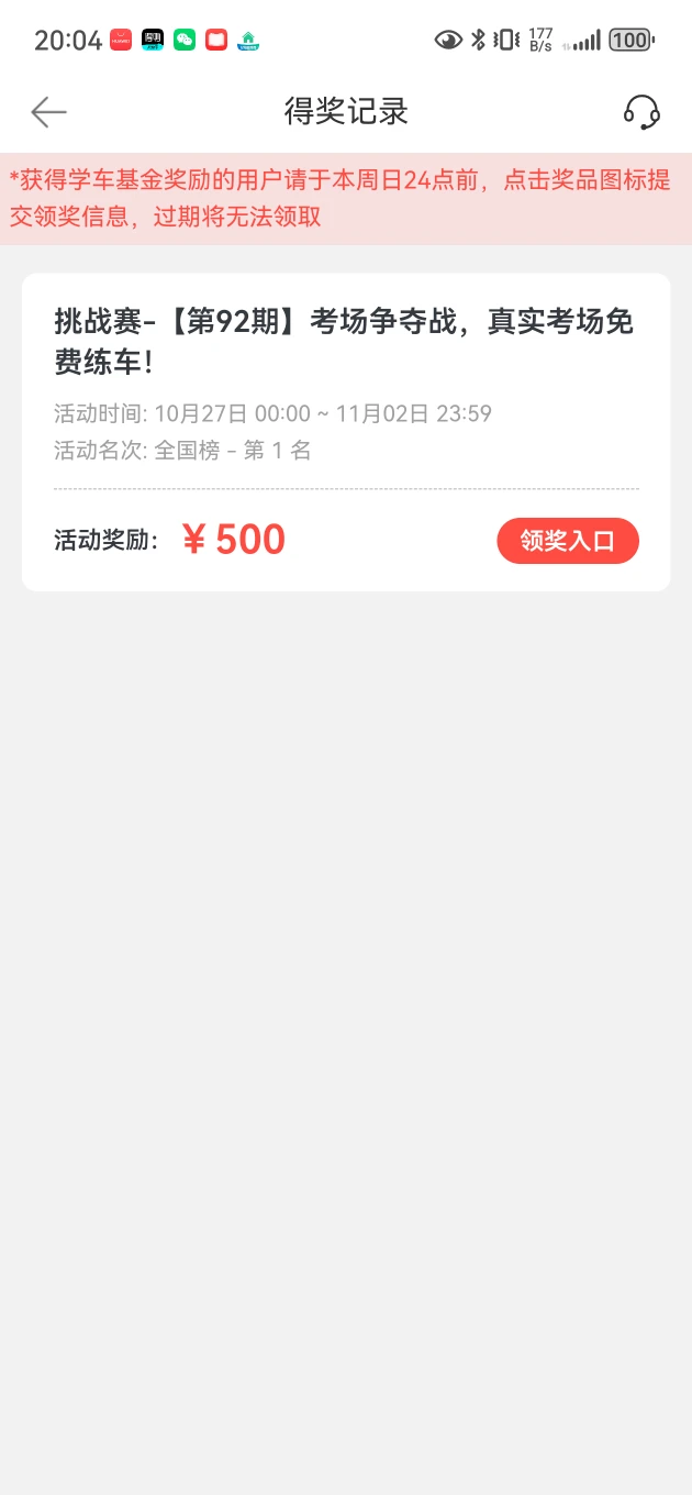 科目二考场争夺战收到了500元奖金,很开心