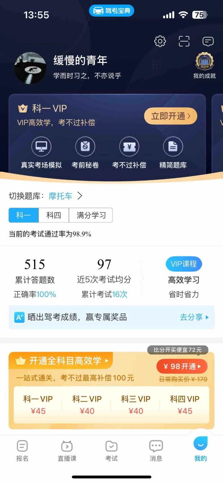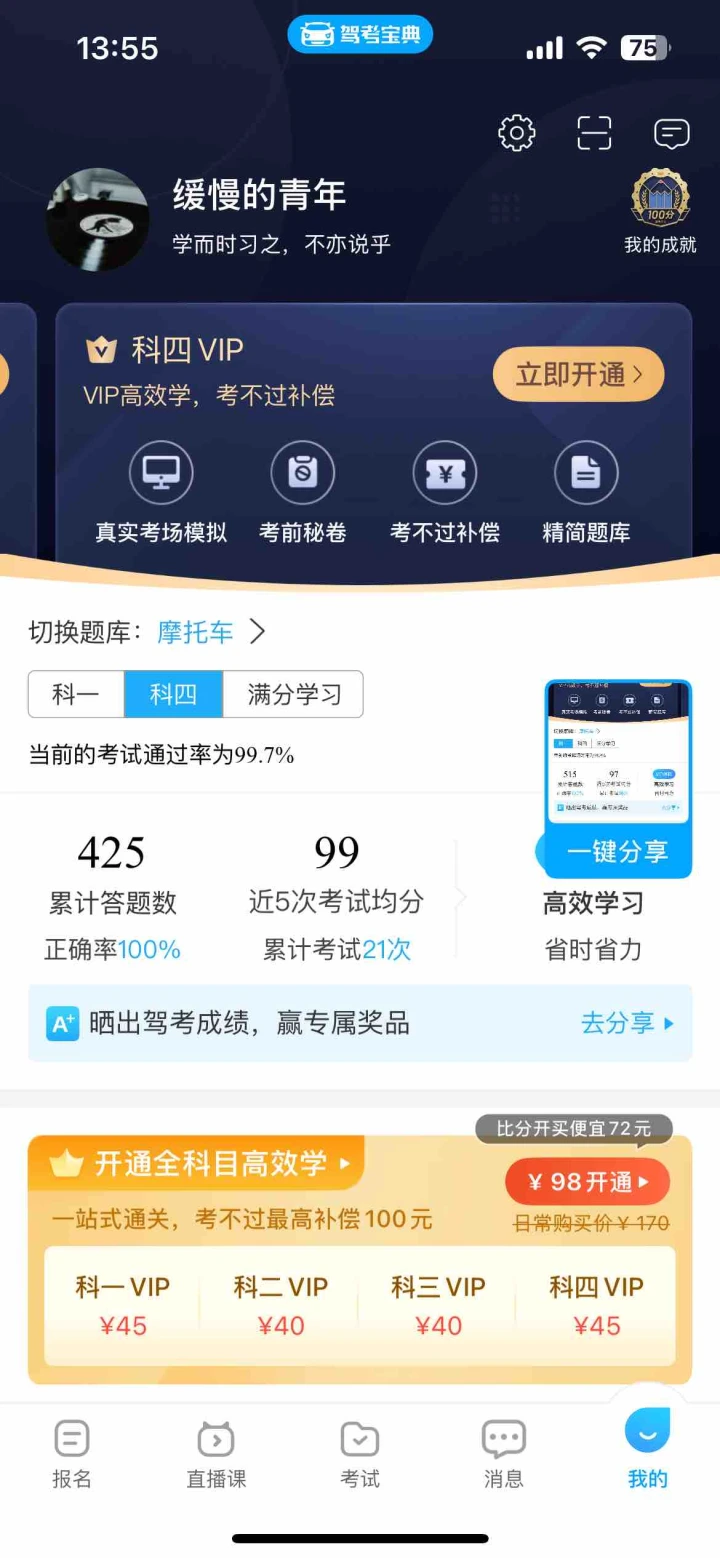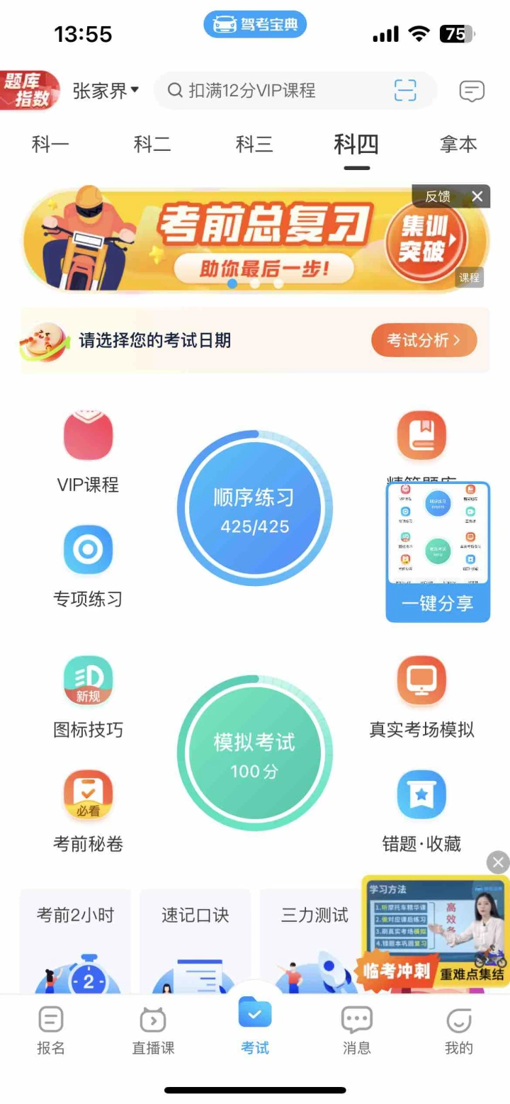 理论把题目做一遍,然后每天没事刷几次模拟考试题,轻轻松松,今天科目一和科目四都是100通过,接着考科目二和科目三,科目二扣了20险过,总之很幸运都是一把过。预祝正在考试的兄弟姐妹也都一把过。驾考宝典还是很好用😍