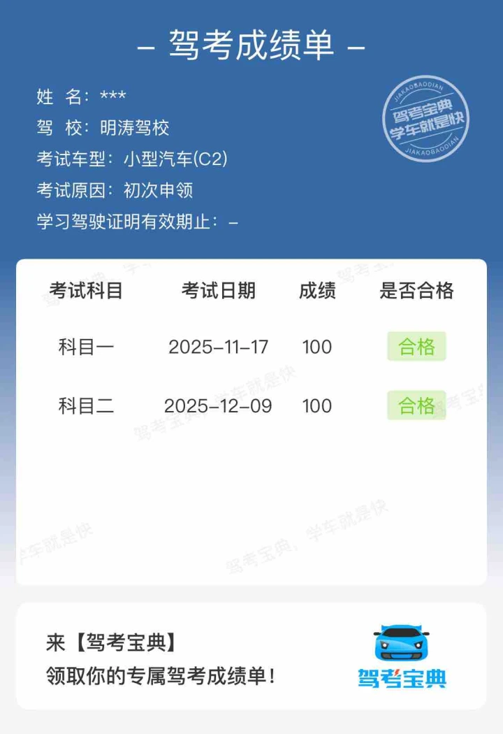 当前位置:首页>驾考圈>新鲜出炉的科二100