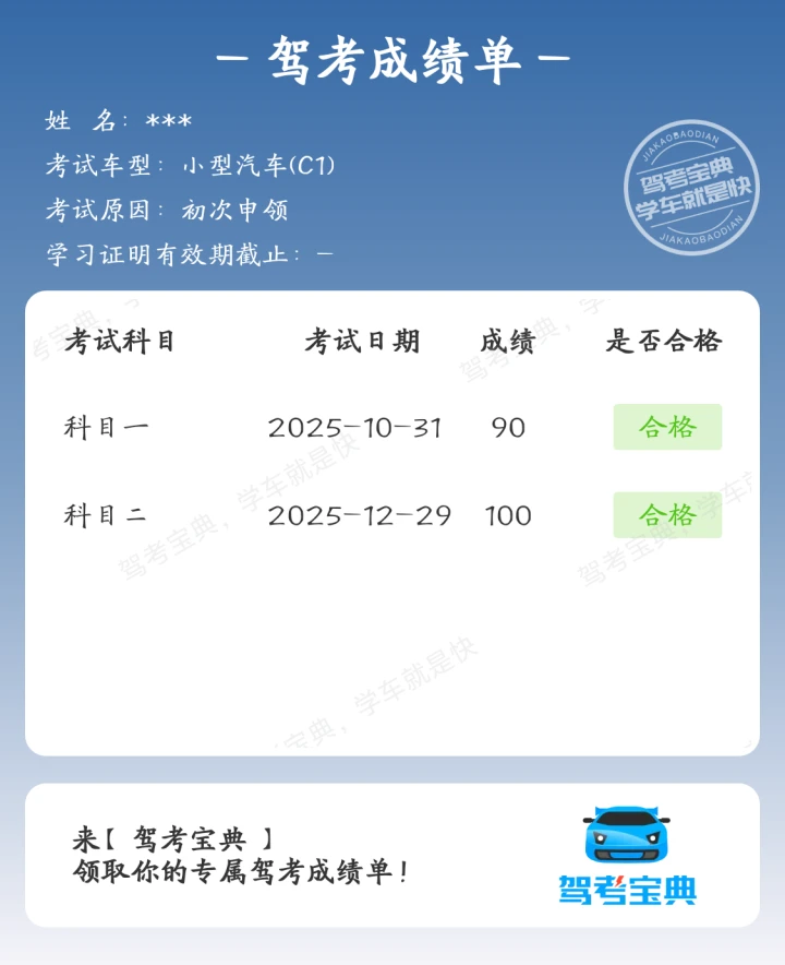 科二过考啦!始终要相信自己~学车就像修炼一样,一天比一天奈斯!