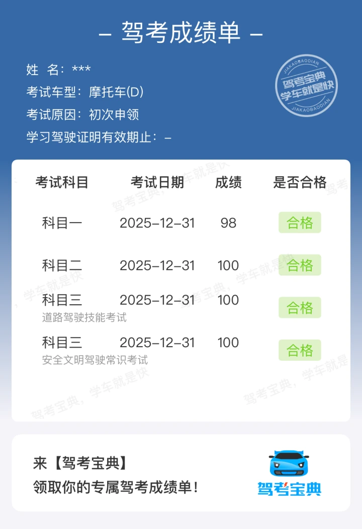 谢谢驾考宝典的一路陪伴,已拿证
