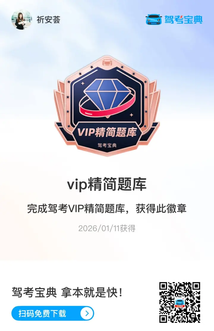 完成驾考VIP精简题库,获得此徽章