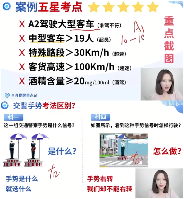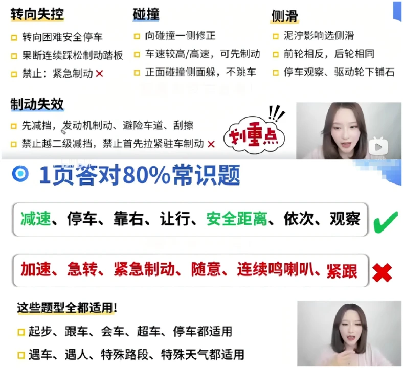 我只用一晚上就搞定了科目四,现在已经拿证啦!🎉 如果觉得科四知识点太多记不住,可以试试我的方法: 🟡 直接做模拟题 连续做10次模拟考,如果都能上95分,考试基本就稳了。大量刷题能帮你熟悉题型、抓住考点。 🟡 巧用口诀和重点题 多记口诀,把复杂的知识点简化。比如“停车距离口五站三”“侧滑前反后同”这种,背熟真的能秒选答案。 🟡 视频课+错题一起看 遇到总错的题目,可以看看肖肖的视频课讲解,配合错题反复巩固,效果翻倍~我也整理了一些重点笔记,考前看一眼很有用。 希望大家都顺利过关,早点拿到驾照!加油~