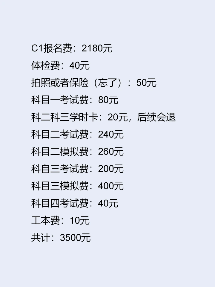 我去年在北京学的C1,全部下来接近七千,还不算模拟费。