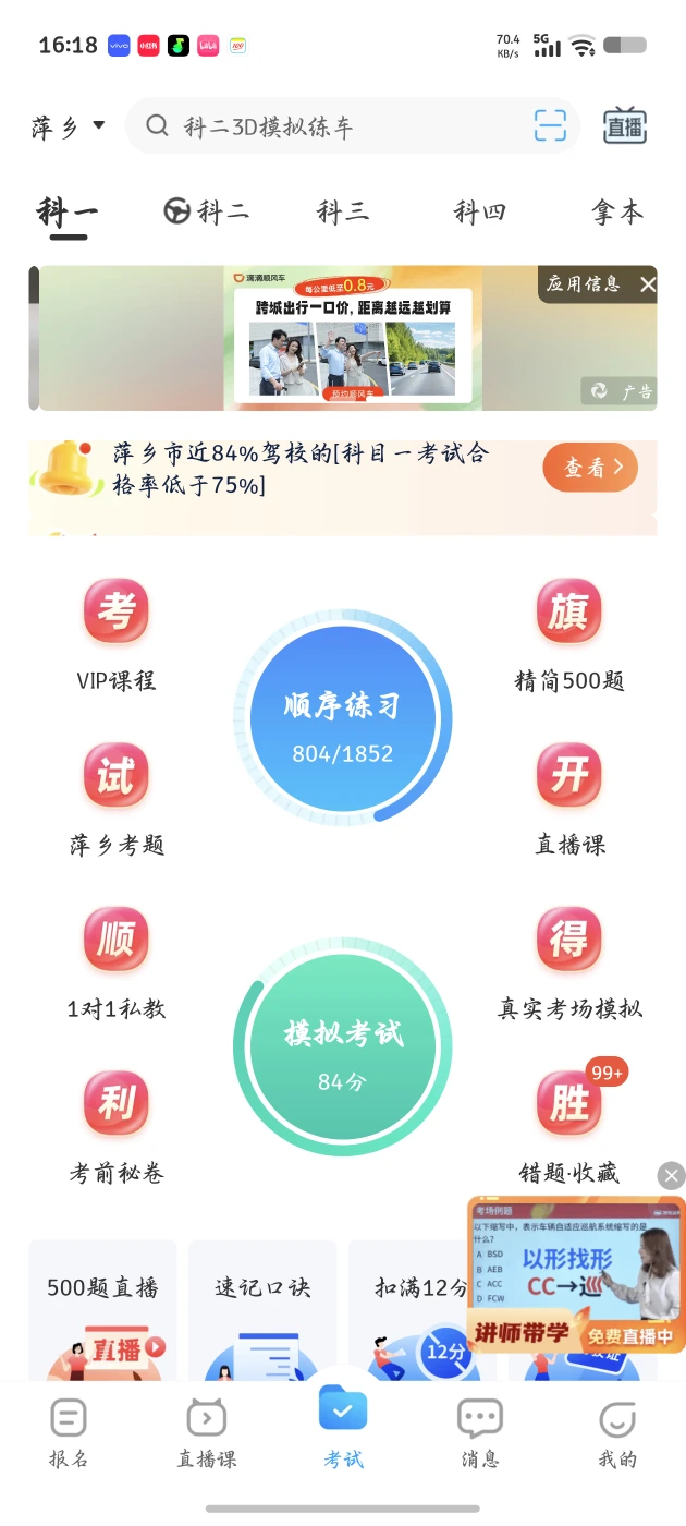一天半速通法分享 (注:是大一的刚经过高中磨练结束没多久的小登) 我在刷了100道题后,直接尝试两次模拟考试,发现请你虽然每次做完都会记住,但是非常零散不便于记忆,所以短时间内光刷题是作用不大的,当然如果有时间上很多题的话也很有用。这里推荐去B站上看个三个小时的网课,讲的非常有条理,而且便于记忆,先学再练先搞清楚有什么知识点,然后再开始猛刷模拟测试,因为顺序练习他是一种类型的题目一起刷,所以可能不够快速的刷完大部分类型题目。实际上的考试不会有那么多文字游戏,所以刷到80分以上的可以去试试,主播95过了。
