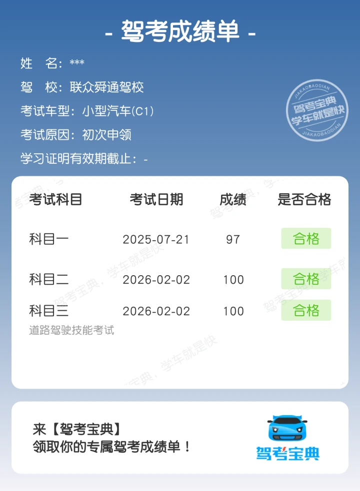 浅浅记录一下驾考成绩吧,科二科三连考通过~