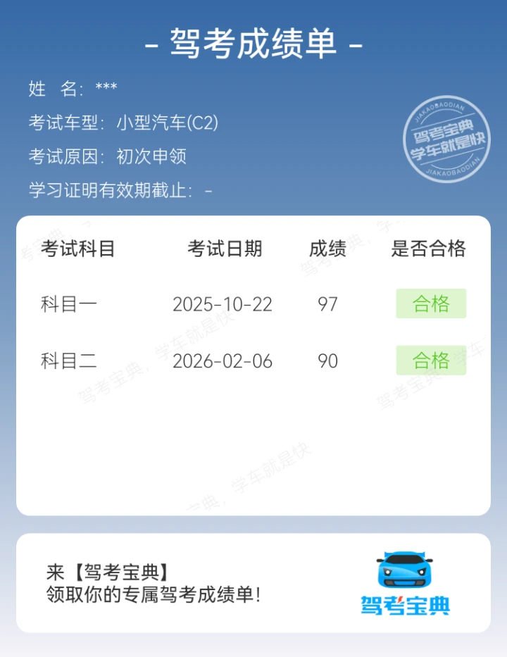 科二过考啦!始终要相信自己~学车就像修炼一样,一天比一天奈斯!