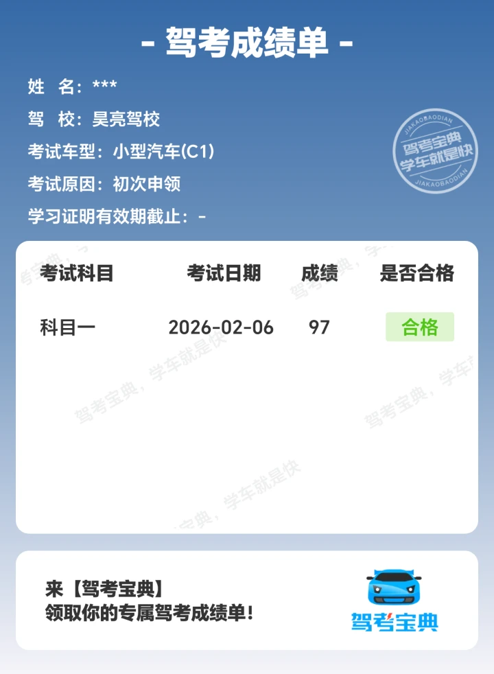 科一顺利通关,友友们收下这份驾