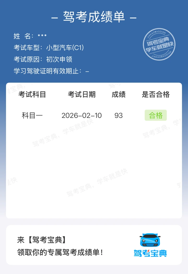 当前位置:首页>驾考圈>科目一>科一顺利通关,友友们收下这份驾