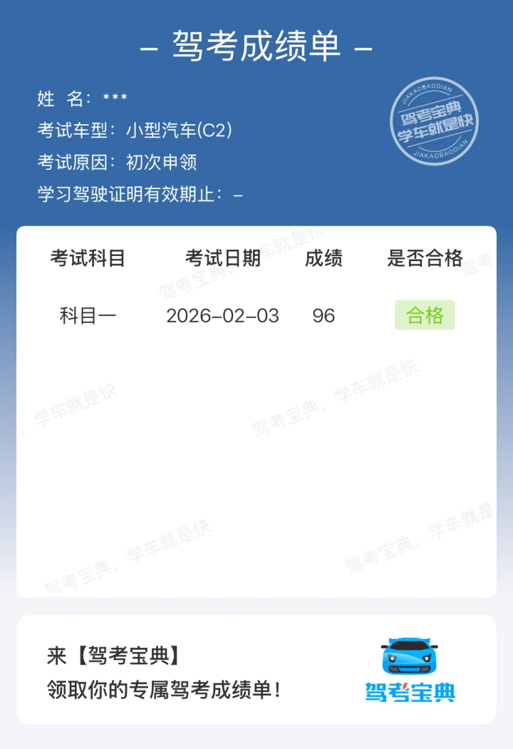 科一顺利通关,友友们收下这份驾