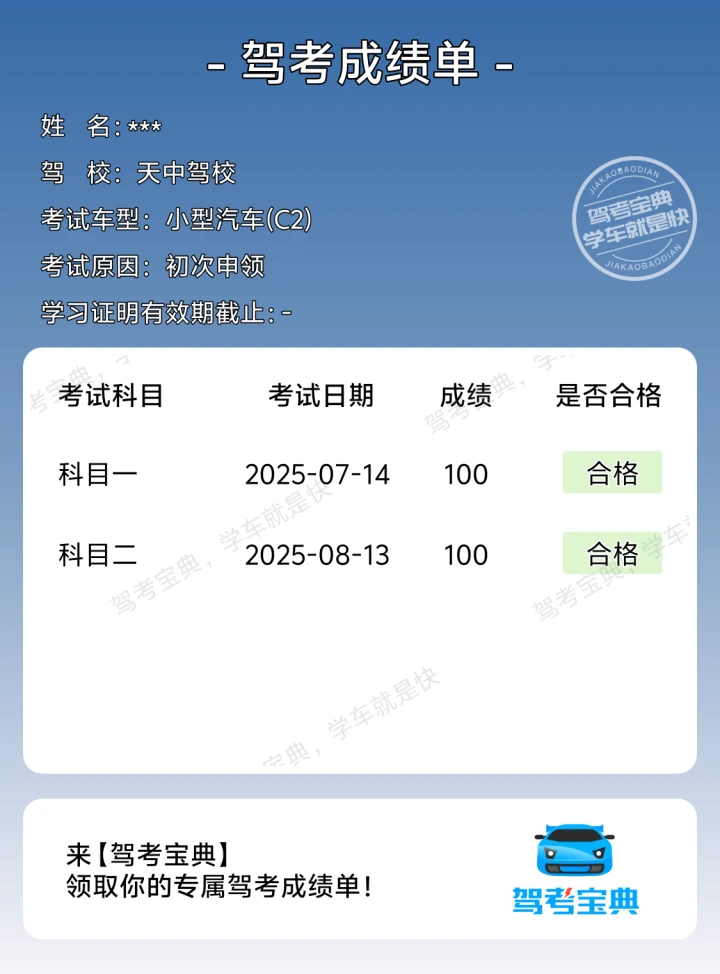 科二过考啦!始终要相信自己~学车就像修炼一样,一天比一天奈斯!