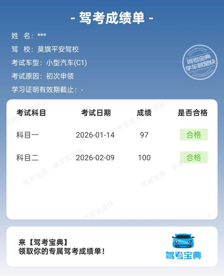 科二过考啦!始终要相信自己~学车就像修炼一样,一天比一天奈斯!