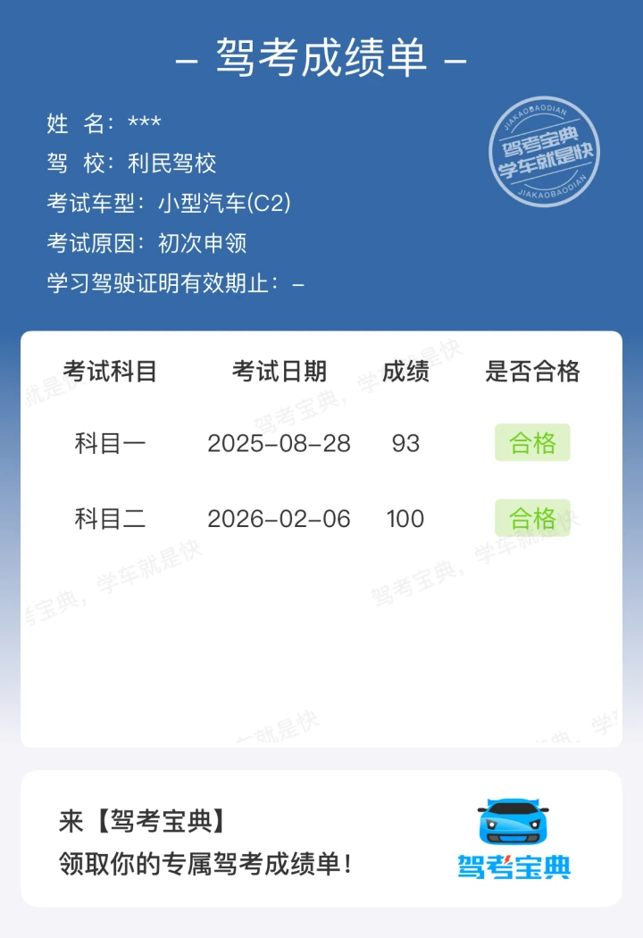 科二过考啦!始终要相信自己~学车就像修炼一样,一天比一天奈斯!