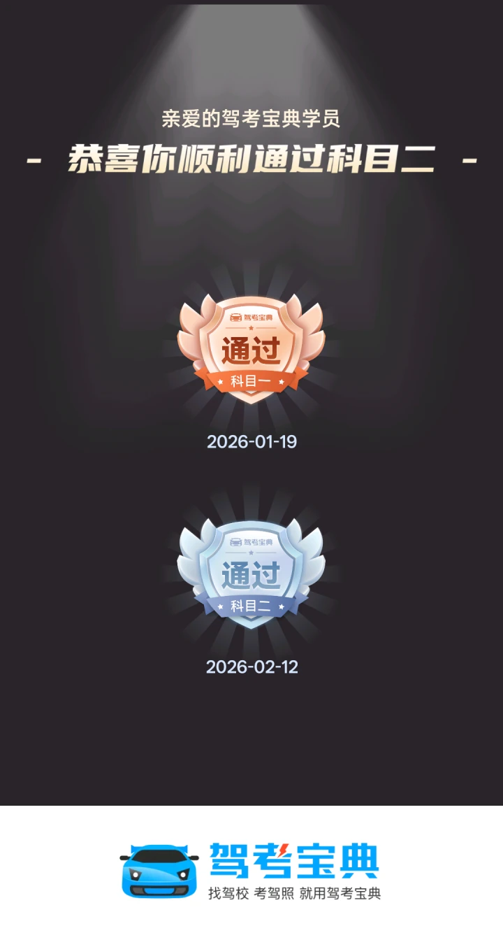 当前位置:首页>驾考圈>科目二>科二过考啦!始终要相信自己~学