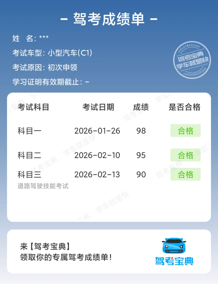 科三过考咯,好心态真的很重要!就中途熄了一次火。其他的都是一把过。科四加油!