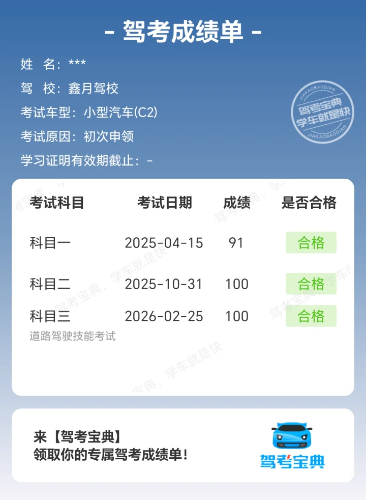 当前位置:首页>驾考圈>科目三>科三过考咯,好心态真的很重要!