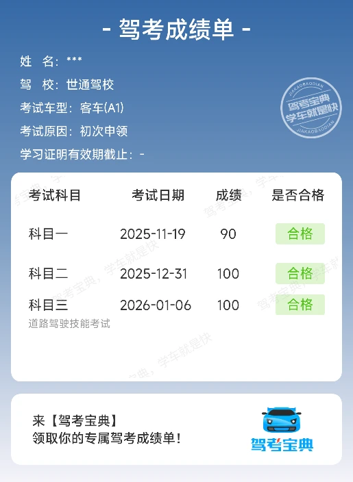 当前位置:首页>驾考圈>科三过考咯,好心态真的很重要!